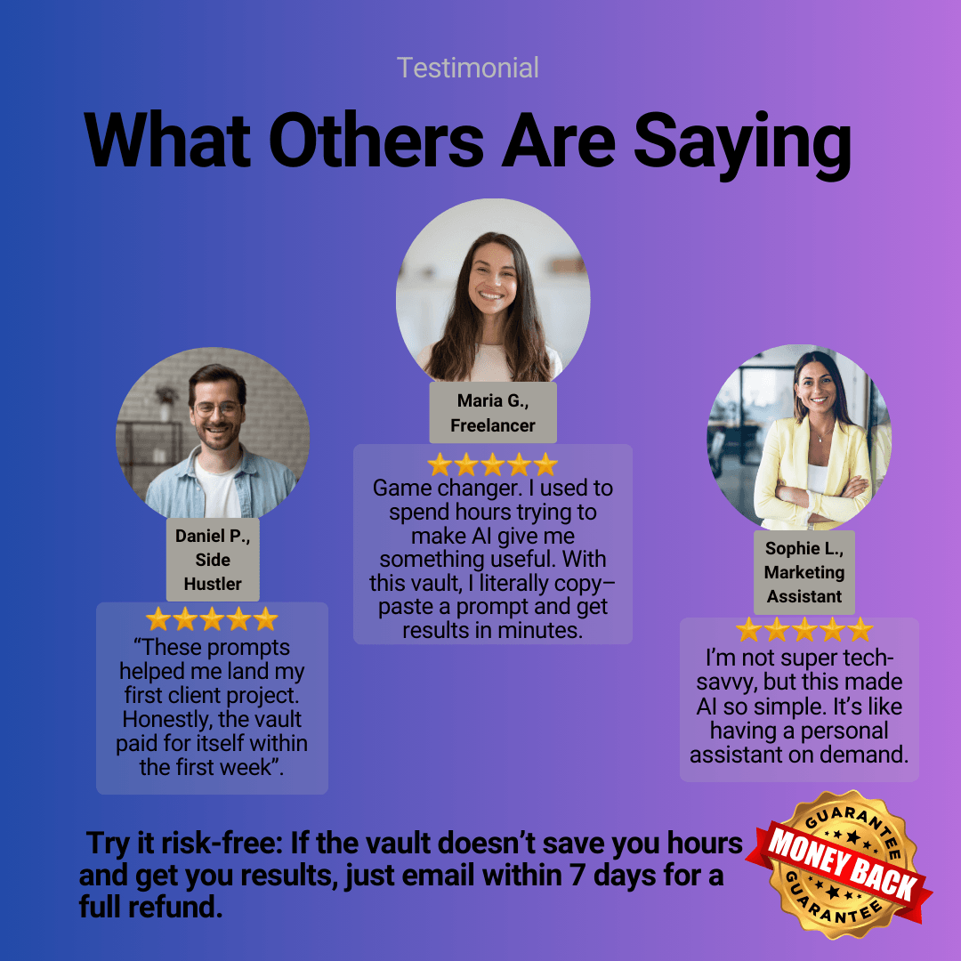👉 Perfect. The Vault is designed for anyone — whether you’re growing a career, managing projects, writing reports, or starting a side hustle. These prompts adapt to your goals.