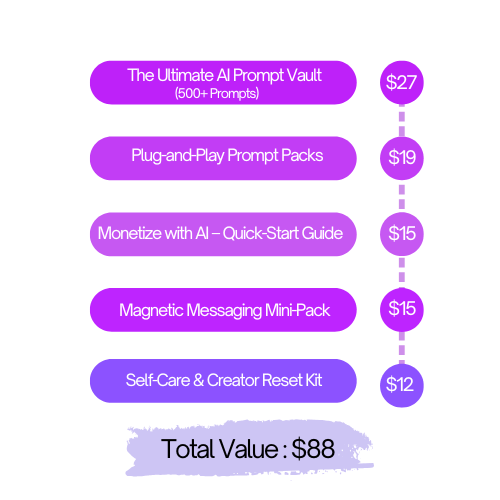 No subscriptions. No fluff. Just lifetime access to 500+ proven prompts and bonuses — all for less than the cost of dinner out.